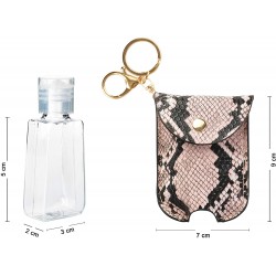 Porta gel personal, para llevar siempre contigo y así tener una mejor higiene. Cómodo, fácil de colgar en bolsos, maletas, mochilas, llaveros, etc. Ideal para mantener tus manos desinfectadas en todo momento. Vistosos diseños exteriores en polipiel, con botella interior de plástico, de gran capacidad: 30 ml.